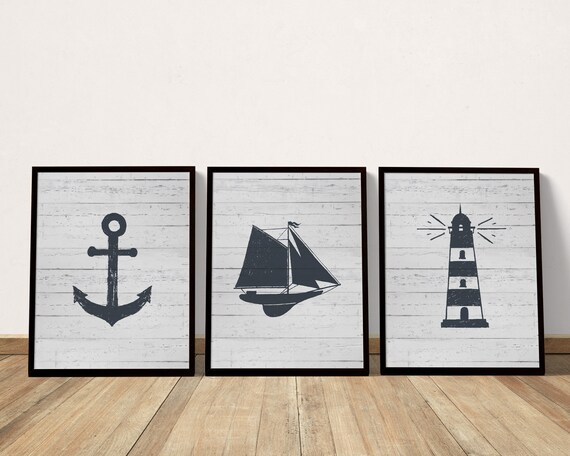 Set Of 3 Nautical Decor Wall Art Printables Coastal Wall Art Etsy