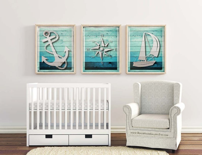 Nautical Nursery Decor 3 Piece Set Large Nautical Wall Art