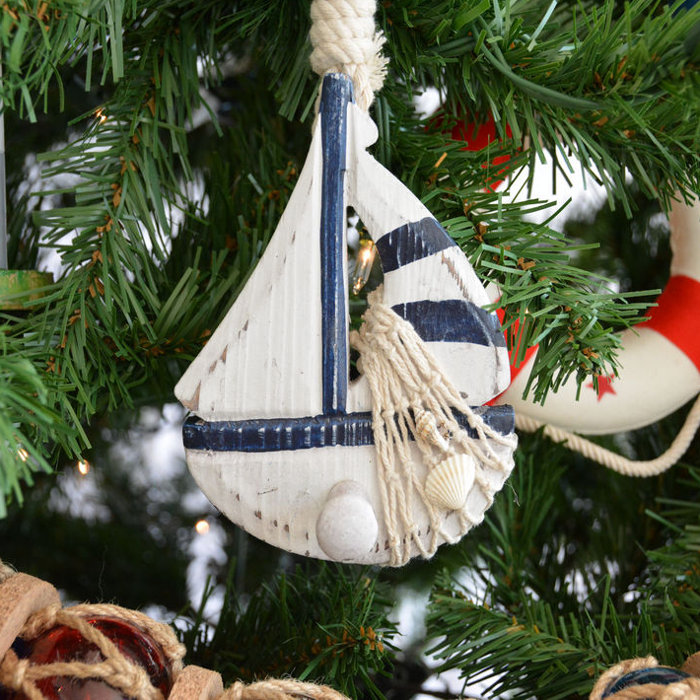 Handcrafted Nautical Decor Wooden Rustic Sailboat Model Christmas