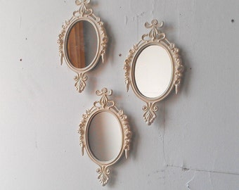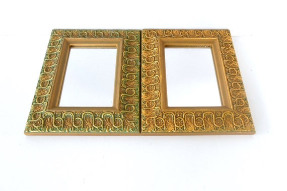 Vintage 2 Small Decorative Mirrors In Wooden Framewall Ornate Etsy