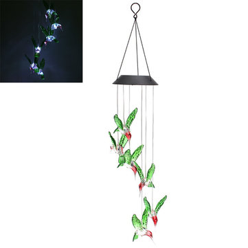 Led Solar Pendant Light Lamp Hummingbird Wind Chime Mobile Home