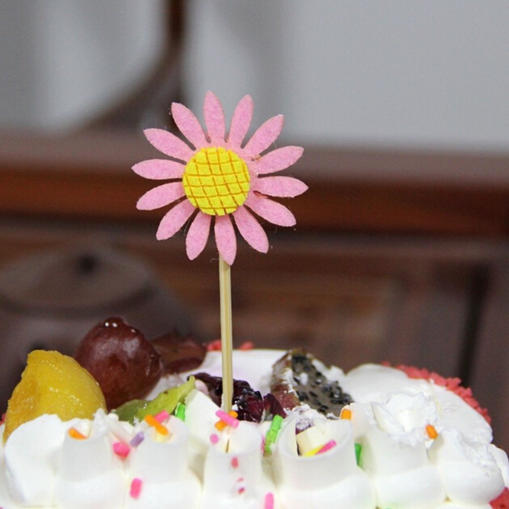 3pcs Flower Cake Decoration Cute Sunflower Cake Toppers Decor