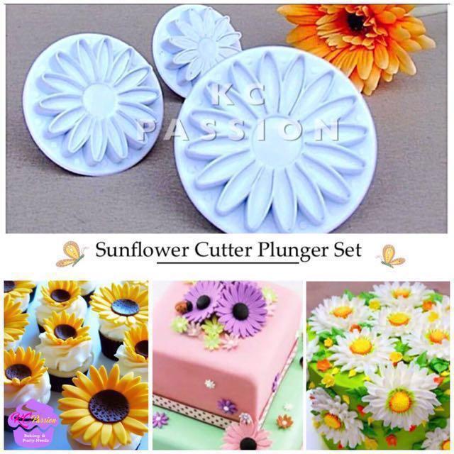 3pcs Sunflower Gerbera Flower Cutter Mold Plunger Set Cake