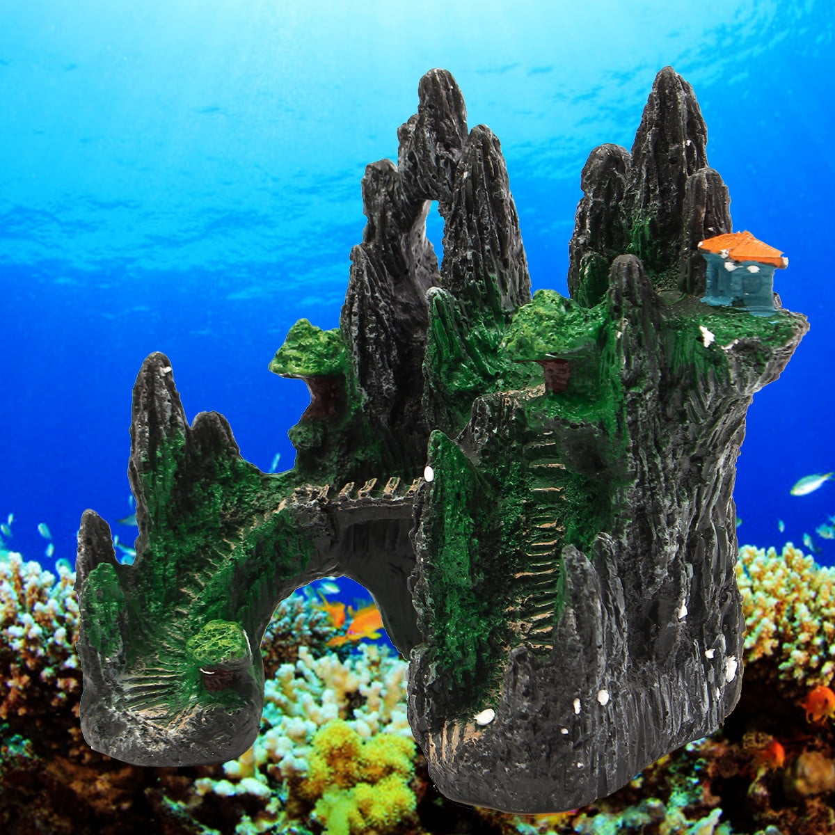 Mountain View Aquarium Tree House Cave Bridge Fish Tank