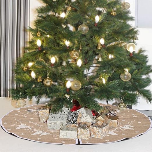 Amazon Com 48 Inch Burlap Christmas Tree Skirt White Snowflake