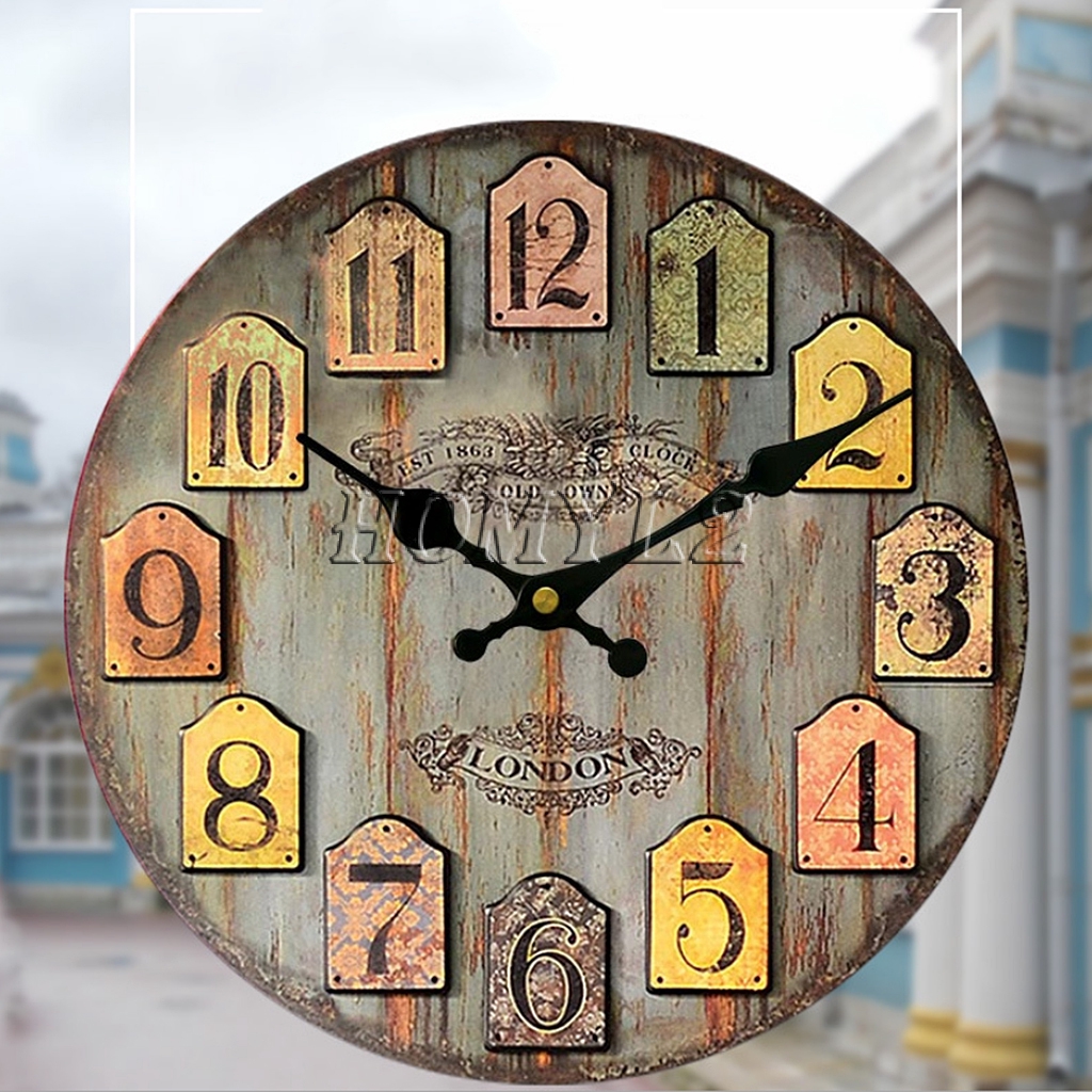 Rustic Wooden Large 30cm Clock Retro Kitchen Wall Decor London Old