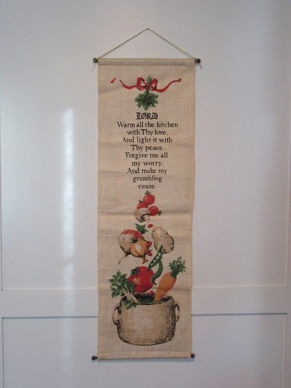 Vintage Kitchen Linen Prayer Wall Hanging On Dowel Rods Mid Etsy