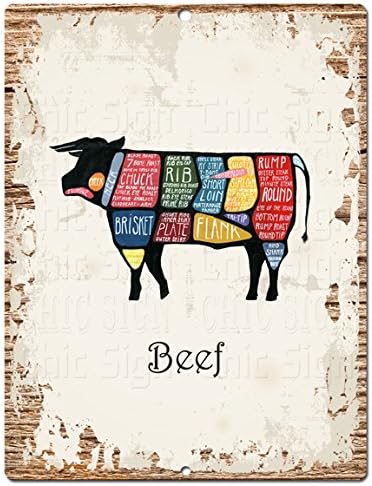Amazon Com Beef Meat Cuts Guide Chart Rustic Vintage Kitchen Wall