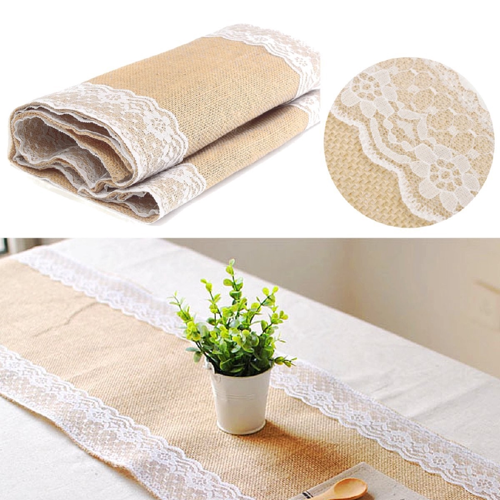 12 Hessian Table Runners Burlap Lace Vintage Rustic Xmas Decor