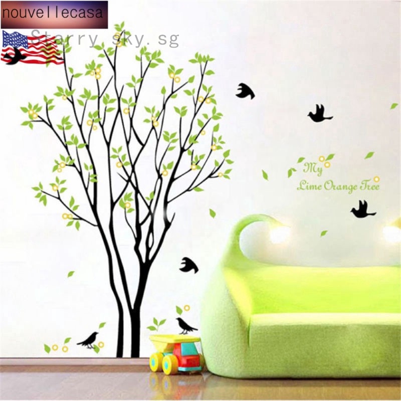 Green Lemon Tree Bird Diy Wall Stickers Diy Art Decals Kids Room