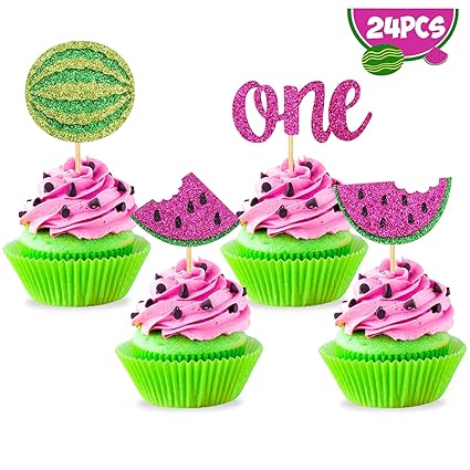 One In A Melon Cupcake Toppers Watermelon Cake Decorations 24pcs