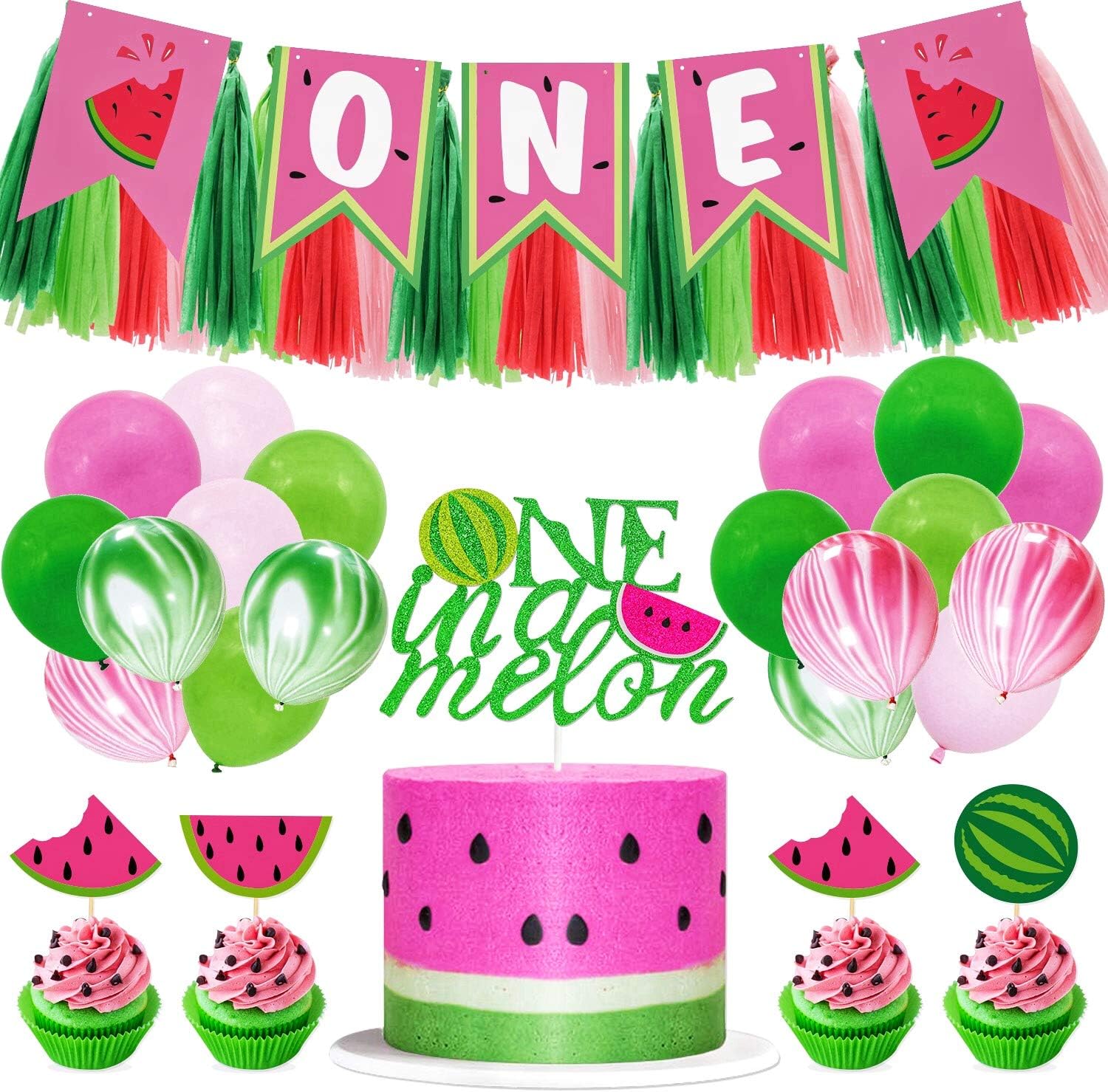 Amazon Com Joymemo Watermelon First Birthday Party Decorations