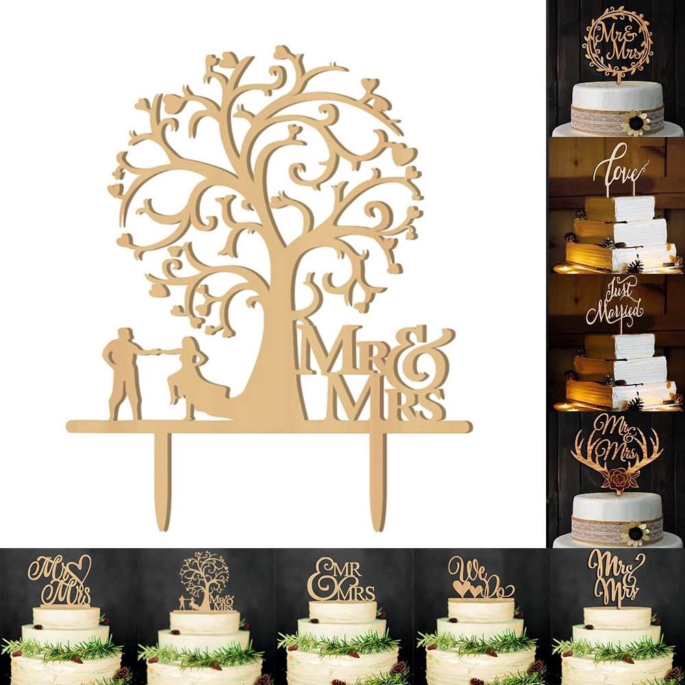 Bride Groom Wood Cake Topper Mr Mrs Tree Cake Topper Wedding Cake