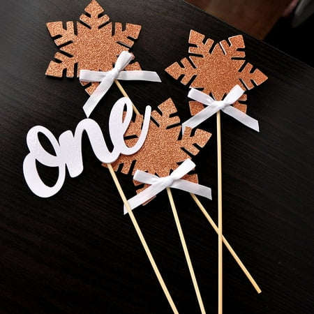Glitter Snowflake Winter Onederland Birthday Cupcake Toppers