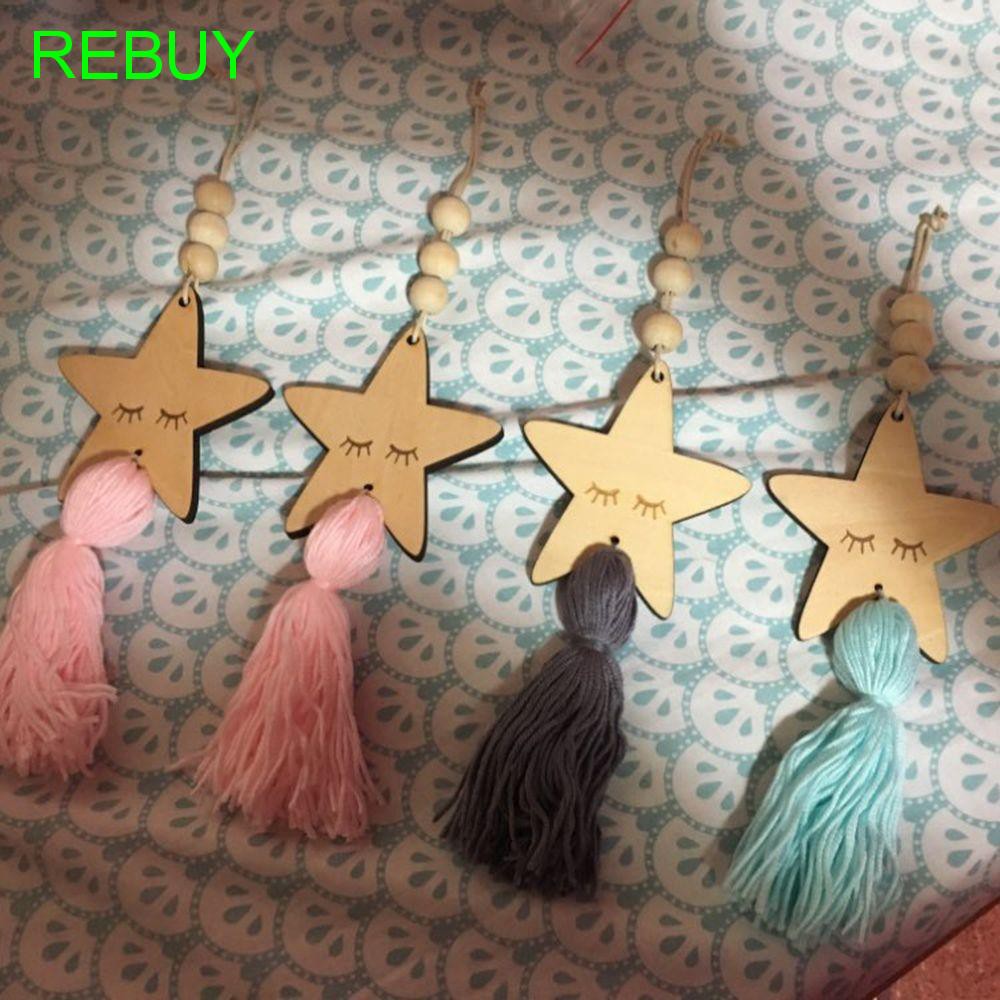 Ins Nordic Wall Decor Ornament Star Wood Wall Sticker Diy Baby