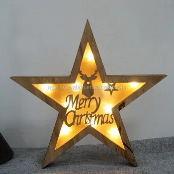 10l Warm White Led Wooden Star Decor With Carving Pattern And Pvc