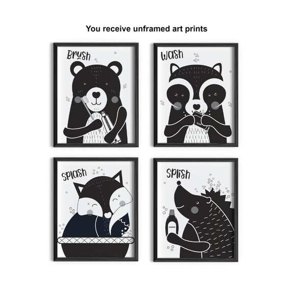 Woodland Bathroom Set Wall Art For Kids Forest Friends Decor Etsy