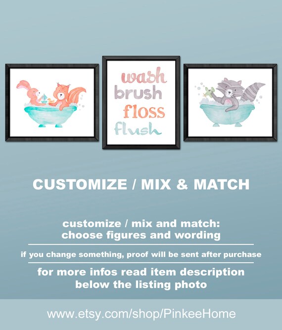 Woodland Bathroom Art Kids Bathroom Decor Forest Animals Etsy